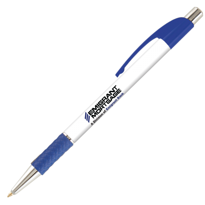 Make room for the Elite Slim Pen to see a change for the better in your marketing plan! This stylish slim barrel pen is trimmed in your choice of nine bright colors and features a stylish basket weave grip. It features our SimpliColor (TM) printing process, yielding a huge imprint area with virtually unlimited colors. It even comes with our gel-like Eversmooth (R) hybrid ink for an extraordinary writing experience in black and blue ink choices. Make a great decision for your company today when you invest in this fantastic pen! *Assembled & Decorated in the USA of US & imported parts